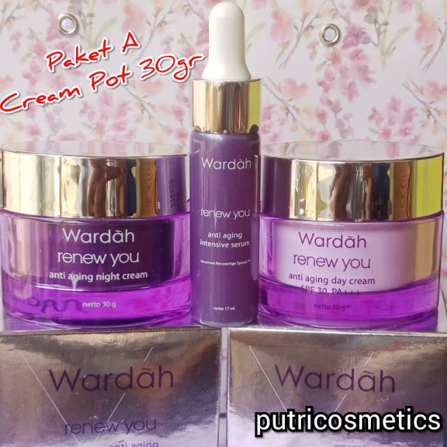 Wardah renew you anti aging intensive serum merupakan serum khusus anti aging dengan lebih dari 10 bahan aktif untuk membantu mengatasi 10 tanda penuaan. Sesuai dengan konsep nama yang diusung wardah menawarkan produk skincare atau perawatan kulit wajah yang diklaim membantu menghambat setiap. Produk yang diperuntukkan bagi wanita berusia matang ini dinamakan wardah renew you anti aging series. Wardah renew you anti aging day cream dengan spf 30 pa merupakan produk yang membantu melindungi kulit dari paparan sinar uva dan uvb.
