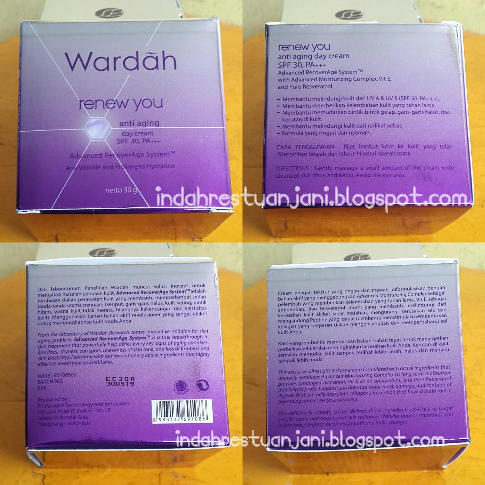 Produk kosmetik dari wardah sendiri telah mengantongi sertifikat halal dari majelis ulama indonesia mui sehingga bagi kaum wanita muslim yang ingin berpenampilan lebih menarik menggunakan alat kosmetik produksi wardah ini tidak perlu khawatir untuk menggunakannya. Wardah renew you anti aging intensive serum. Pemakaiannya cukup tipis tipis aja agar lebih mudah meresap ke dalam pori pori kulit wajah. Wardah renew you anti aging night cream.