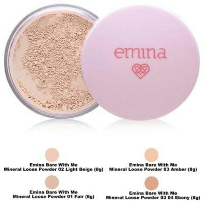 Bedak tabur emina bare with me mineral loose powder. Emina bare with me mineral loose powder fair adalah bedak tabur dengan kandungan mineral dan vitamin e sehingga aman untuk semua jenis kulit. Emina bare with me mineral loose powder. Emina bare with me mineral loose powder. Bedak tabur emina ini memberikan tampilan yang silk dan natural finish dan aman untuk segala jenis kulit.