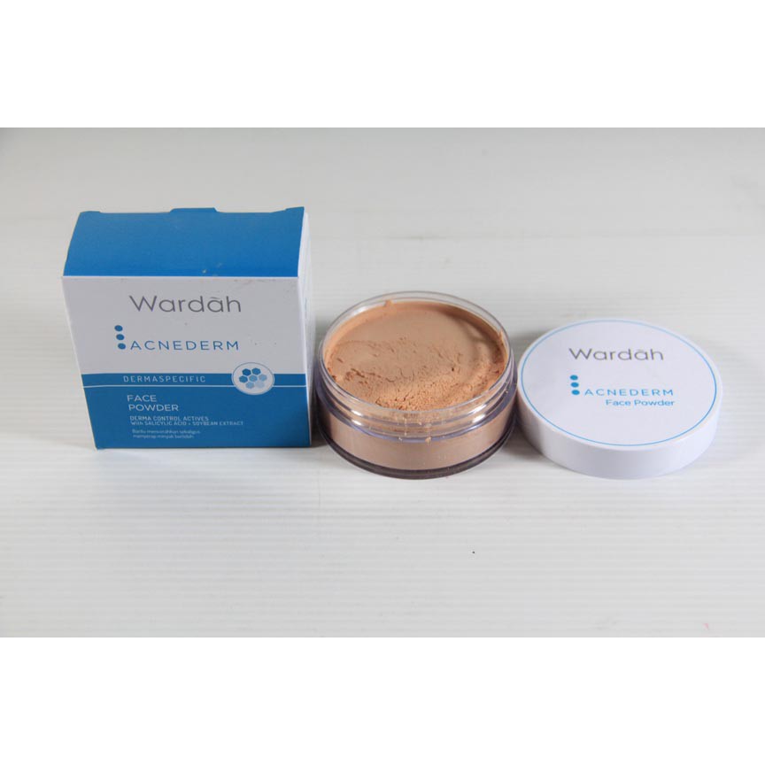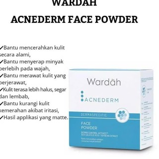Wardah sebagai brand produk produk kecantikan terkemuka di indonesia mengeluarkan sebuah seri loose powder yang banyak digandrungi wanita. Mengandung oil free formula dan oil control yang bisa menjaga produksi minyak agar wajah tetap lembut dan bebas kilap. Bedak ini diklaim bisa mencerahkan kulit dan mengurangi produksi minyak di wajah karena oil free. Bedak tabur untuk kulit berjerawat dari wardah diberi nama warda acnederm face powder.