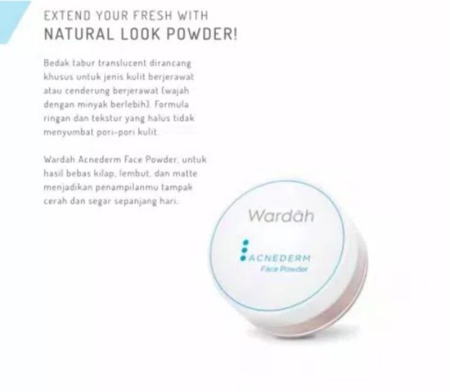Bedak tabur wardah khusus jerawat. Uncategories bedak padat wardah khusus jerawat. Bagi anda yang memiliki kulit berjerawat sekaligus berminyak produk ini juga cocok untuk anda gunakan karena dapat menyerap minyak di wajah dengan cukup baik. Wardah merilis sebuah bedak khusus untuk kulit berjerawat yakni wardah acne face powder. Wardah acne face powder.