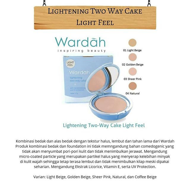 Produk ini telah diformulasikan dengan bahan yang dapat menyamarkan ketidaksempurnaan pada wajah seperti bintik hitam. Wardah luminous liquid foundation. Dari sekian banyak produk kecantikan salah satunya yaitu bedak two way care. Kombinasi bedak dan foundation dari micro coated particle yang halus membuat lembut di kulit dan tahan lama.