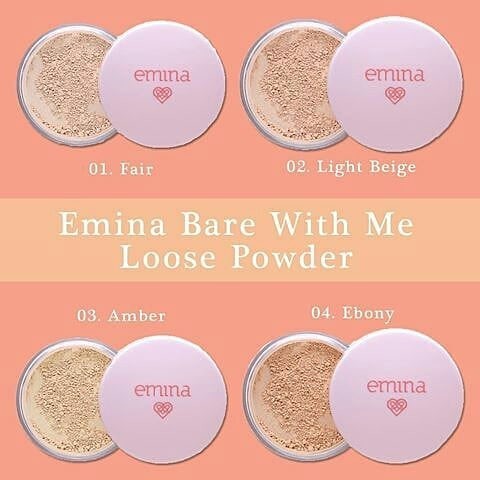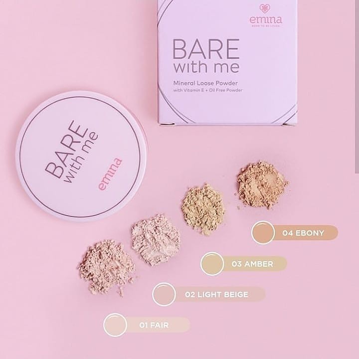 Emina bare with me mineral loose powder bedak emina. Available in 4 colors fair light beige amber ebony. Butiran bedak yang sangat halus membuat daya coverage bedak ini sangat bagus jika dibandingkan dengan produk serupa. Target konsumen emina adalah kaum remaja makanya packaging nya itu imut imut dan feminim. Salah satu bedak untuk kulit berminyak produksi lokal adalah emina bare with me mineral loose powder yaitu bedak tabur yang memiliki kandungan lauroyl lisine mica dan oil absorbing powder yang bekerja secara sinergis untuk memberikan hasil yang halus natural dan bebas kilap sepanjang hari.