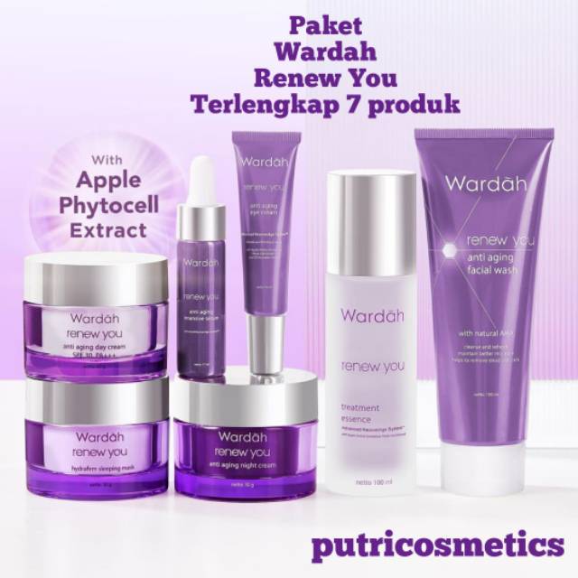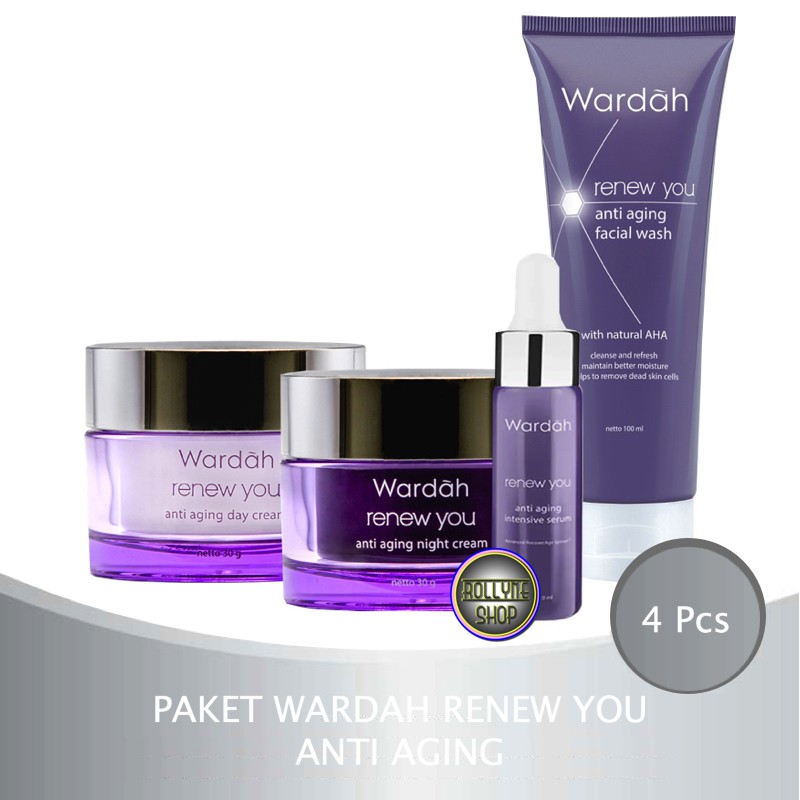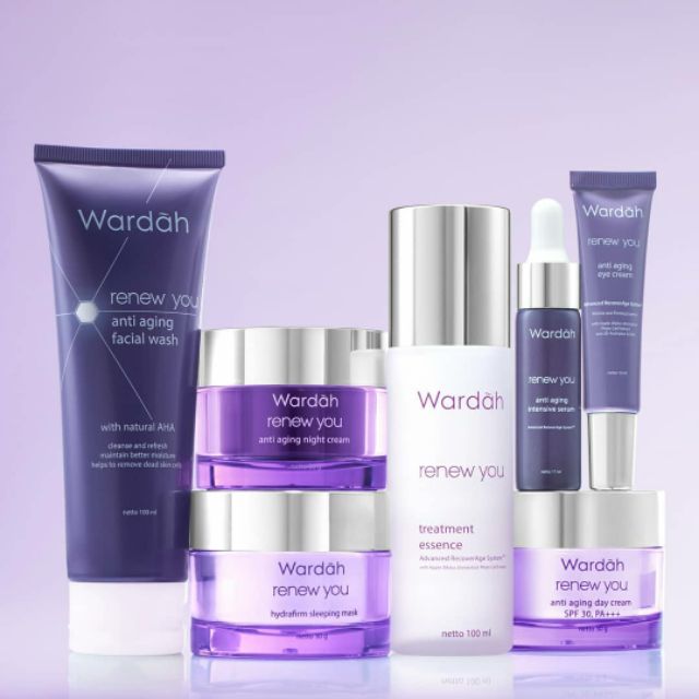 Ini cara waktu yang tepat memakai skincare anti aging. Kulit wajah pun mendapatkan perlindungan optimal sehingga dapat melawan berbagai tanda penuaan dini bahkan di saat tidur. Series wardah renew you ini mempunyai kemasan berwarna ungu dan silver sehingga memiliki kesan mewah. Menyamarkan keriput dan garis halus.