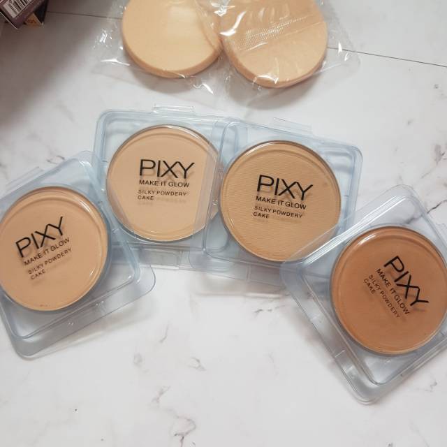 Pixy make it glow silky powdery cake. Two way cake silky powdery cake dengan tekstur halus dan rigan memberikan daya tutup yang tampak natural dengan hasil akhir kulit tampak halus bercahaya dan tahan lama. Cek harga di shopee. Warna bedak juga cenderung mudah menyatu dengan warna kulit sekaligus memberikan coverage tanpa ada rasa cakey di wajah.