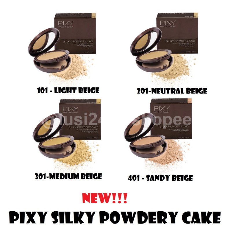 Pixy silky powdery cake shade. Pixy uv whitening two way cake cover smooth. Pixy make it glow silky powdery cake. Cek harga di lazada. Yakni shade 101 light beige 201 neutral beige 301 medium beige dan 401 sandy beige yang diurut dari warna yang lebih terang ke yang lebih gelap.