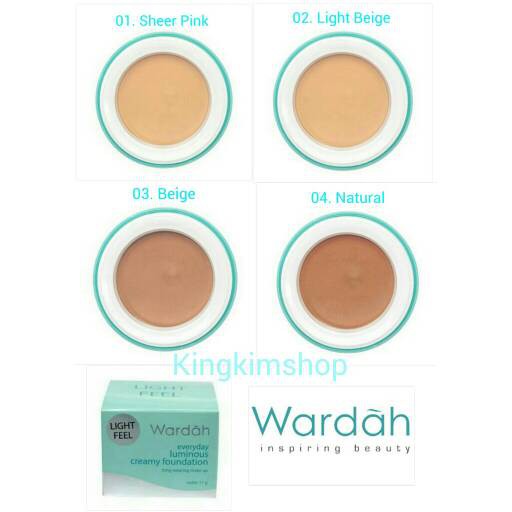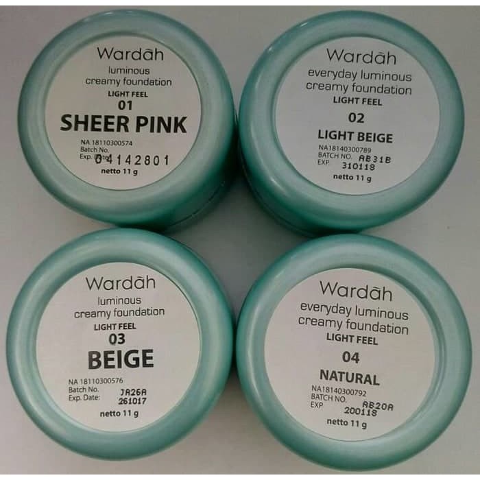 Add to wishlist lihat. Wardah everyday luminous liquid foundation 04 natural 40 ml. Wardah exclusive creamy foundation 01 light beige 12g merupakan foundation krim yang memberikan daya cover maksimal dan warna kulit merata serta dapat diaplikasikan untuk menutup noda wajah sebelum anda menggunakan make up. Produk wardah selain terkenal dengan bahannya yang halal juga memiliki harga yang relatif murah untuk produk kamu cukup mengeluarkan sekitar rp 40 000 tersedia beberapa warna yang bisa kamu pilih seperti sheer pink beige light beige dan natural.