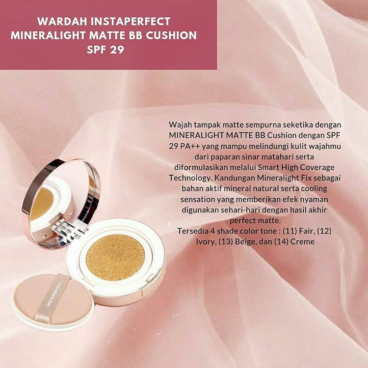 Spf 29 pa perlindungan komplit dari make up ini siap. Bener bener bagus banget desainnya. Wardah instaperfect mineralight matte bb cushion terdiri dari empat varian shade sehingga memberikan pilihan bagi pemilik warna kulit cukup variatif yakni 11 fair 12 ivory 13 beige dan 14 creme. Kelebihan wardah mineralight matte bb cushion dengan spf 29 pa menurut claimnya di lazada adalah.